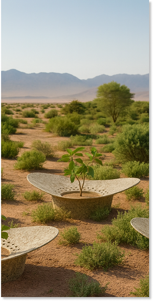 Two of the most  critical environmental issues of the  twenty-first century are soil erosion and lack off water, two related issues that exacerbate one another and jeopardize attempts to create sustainable ecosystems. Conventional irrigation or afforestation techniques are expensive, ineffective, and ultimately unsustainable in arid regions.
